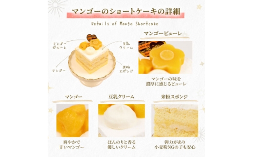 【マンゴーのショートケーキ】卵、マンゴー、米粉、豆乳クリーム、てんさい糖、ゼラチン