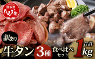 4月発送【訳あり】牛タン 3種食べ比べ セット 合計1kg <厚切り 300g / 薄切り 300g / サイコロ ステーキ 400g> 冷凍 不揃い ワケアリ タン スライス ステーキ 訳有 薄切り 訳あり品 067-0648-04