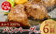 【 3月発送 】あか牛 100%ハンバーグ セット 120g×6個【 ハンバーグ あか牛 牛肉 肉 熊本産 国産牛 和牛 旨味 うま味 ぎっしり 熊本県 多良木町 牛肉 】046-0638-3