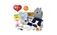 - 収納リュック・防災の心得・IDホイッスル&カラビナリング・カイロ・レインコート・携帯用トイレ・抗菌消臭簡易トイレ・トイレポンチョ・ダイナモマルチライト・モバイルバッテリー(乾電池式)・軍手・静音アルミブランケット・歯磨きティッシュ・ウェットティッシュ・衣類圧縮袋・スリッパ・ネックピロー・アイマスク・耳栓・給水袋3L・5年保存水500ml・カンパン・カトラリーセット・8徳ナイフ・ソーイングセット・緊急避難カード・水に流せるペーパー・救急6点セット・45Lゴミ袋3P・ウェット手袋