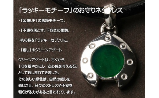幸運 モチーフ の シンプルなホースシューと邪気を払うグリーンアゲートの組合せ。