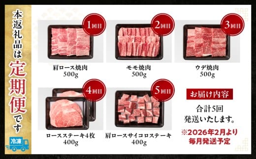 - 【5か月定期便】宮崎牛焼肉定期便| 宮崎牛 牛肉 お肉 国産牛 ブランド牛 和牛 焼肉 スライス ステーキ サイコロステーキ ウデ焼肉 モモ焼肉 定期便 霜降り 贈答用 贈答 贈り物 プレゼント 記念日 誕生日 内祝い グルメ BBQ 焼き肉 アウトドア ミヤチク お祝い ホームパーティー おもてなし |_Tk031-t029
