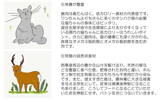 野生のお肉なので、風味が強く嗜好性バツグン。ミネラルやアミノ酸が体を温めるので免疫力アップも期待できます。