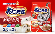 • ねこ元気 お魚ミックス まぐろ・かつお・白身魚入り 2.0kg×2袋 ペットフード キャットフード 猫のごはん 猫用フード 猫 ペット ドライ ユニ・チャーム ペット ユニ・ケアー [№5275-0814]