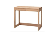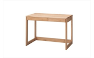 堀田木工所の学習デスク「スキップ 100本体」は、リビングに置いても邪魔にならない奥行55cm。引出し裏には1500W2口コンセントがついています。引出しは左右どちらにも取付けできます。丸みのある木製フックが2つ付属しています。