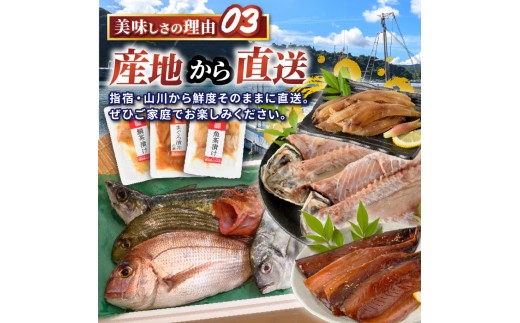 鹿児島の山川水産持ち船でとれた自慢の金目鯛を中心に厳選した魚介を特製の味噌につけこみました。