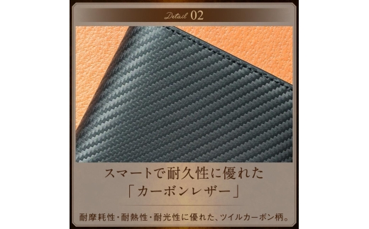 カーボンレザーとコードバン調仕上げが魅力の二つ折り財布。
