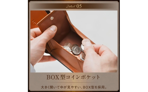 小銭入れは大きく開くBOX型で、中身が見やすく取り出しやすい設計になっています。