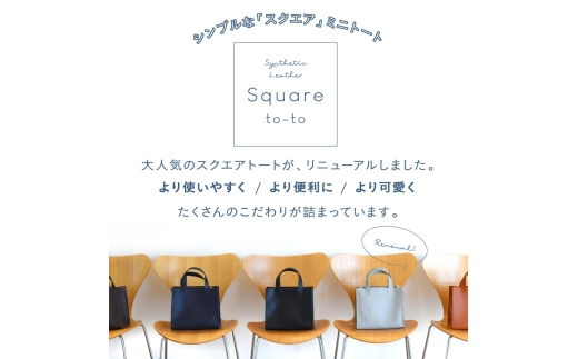 上品に見えるPUレザーを使ったスクエア型ミニトート。