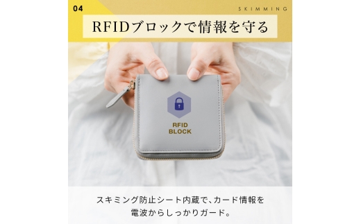 ファスナー仕様で中身がこぼれず、さらにスキミング防止機能付きで大切なカード情報も安心。