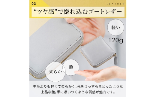 ツヤのある柔らかなゴートレザーを贅沢に使用した二つ折り財布。