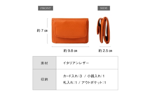 • ORANGE/オレンジ	 \大好評につき新色登場!/ミニ財布 レディース 三つ折り 本革 イタリアンレザー 手のひらサイズ スキミング防止 コンパクト 小銭入れ ボックス型 ギフト カード収納 隠しポケット 日本製スナップ 可愛い おしゃれ スキミング 防止 MURA 岐阜県 大垣市