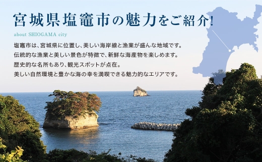 塩竈市は宮城県のほぼ中央に位置し、奥州一の宮鹽竈神社の門前町として、またみなとまちとして海とともに歩んできたまちです。