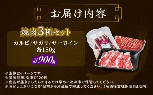 - 焼肉3種セット(カルビ150g・サガリ150g・サーロイン焼肉150g)×2 計900g