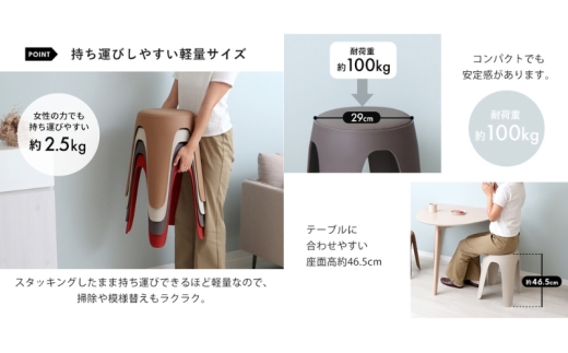 使うときはしっかり快適に、使わないときはコンパクトに重ねてスッキリ収納できる樹脂製スタッキングツールです。