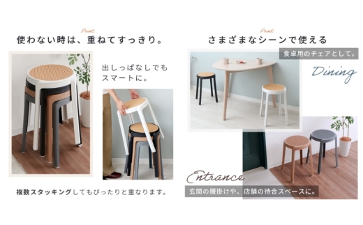 ラタン風のデザインがおしゃれなスタッキングスツール。
