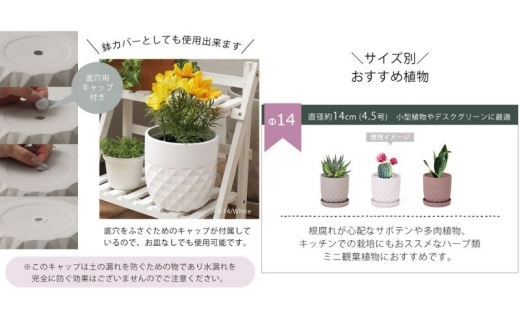 ※ロットにより、植木鉢の縁の内側に段差がある場合と無い場合がございます。複数ご購入の場合は予めご了承くださいませ。