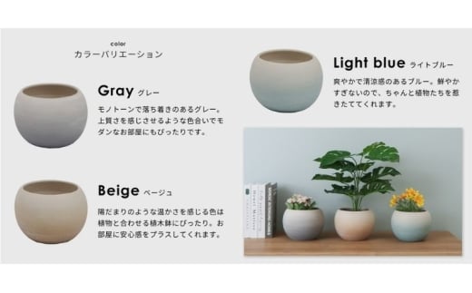 淡いグラデーション塗装がおしゃれな、かわいい円形の植木鉢です。かすれが独特の色味を出しており同じものは1つとしてありません。