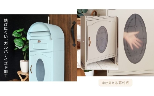 美しいフォルムの円形屋根と荷物の確認がしやすいかわいい窓が印象的なおしゃれで実用的なポストです。