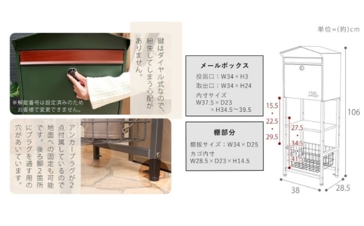 投函口サイズ:(約)幅34×高さ3cm