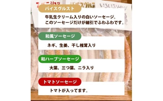 ※腸詰ソーセージ8種(あらびき・ガーリック・スパニッシュ・マンダリーネ・バイスヴルスト・和風ソーセージ・和ハーブソーセージ・トマトソーセージ)の中からおまかせで5袋