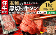 定期便 厚切り 牛タン ステーキ 塩味 1kg 小分け 500g × 2パック 牛肉 タン 厚切り牛タンステーキ 肉 焼肉 牛肉 牛たん 天日塩 真空冷凍