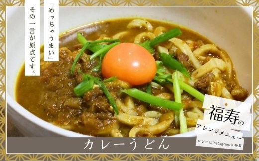 ルウには特にこだわりを込めており、玉ねぎ、人参、トマトの素材の水分のみを利用しペーストを作り、自慢のすじにこみをカレーへと進化・融合させたのが福寿の牛すじカレーです。贅沢で奥行きのある味わいに仕上げました。