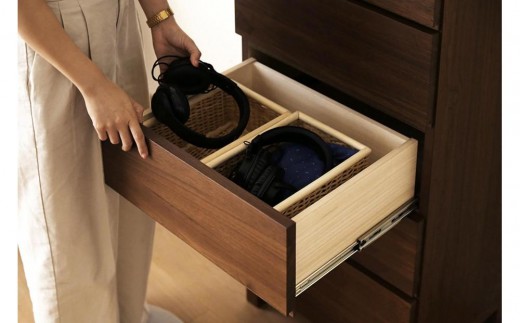 深さの異なる引出しを4杯設けているためさまざまな収納物に対応します。