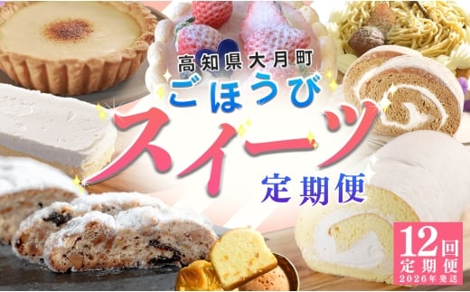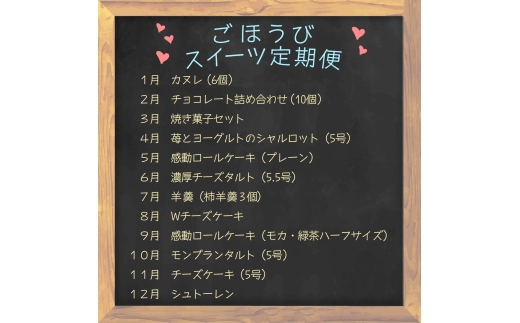 生チョコケーキやモンブランタルトなどバラエティ豊かなスイーツを毎月一度、計12回お届けします!