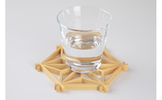 出来上がった組子細工は、オリジナルコースターとしてご使用できます。