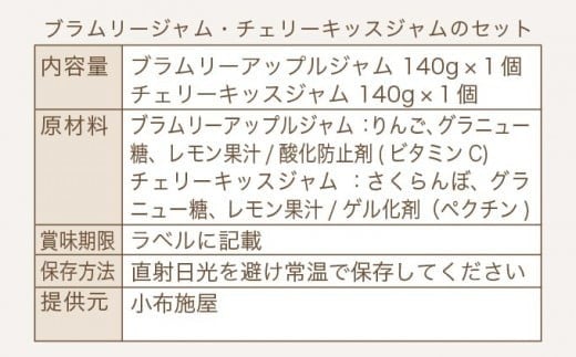 ブラムリージャム・チェリーキッスジャムのセット 140g × 各1個 計2個 [小布施屋] ジャム 詰合せ 食べ比べ 味比べ 味くらべ りんご 林檎 さくらんぼ ギフト 贈り物 お取り寄せ 瓶 長野県 信州 小布施 [H-65]