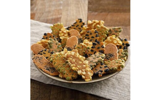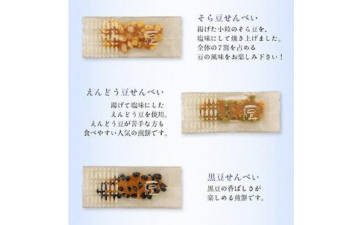 手造りの良さを活かし全体の7割が豆という、どこを噛んでも豆に当たるほど、豆たっぷりの手焼きせんべい。