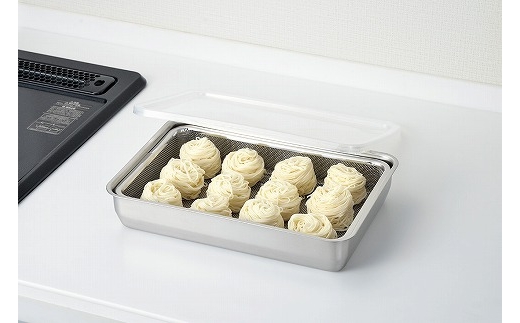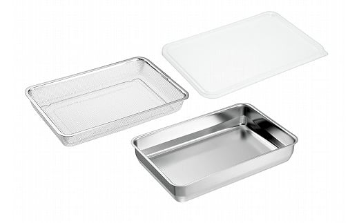 材質:バット・ザル=18-8ステンレス鋼・蓋=ポリエチレン樹脂