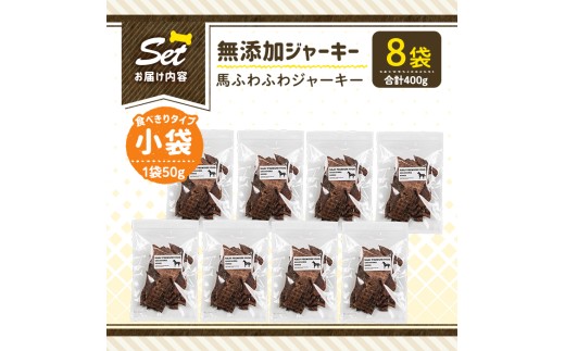 a1053-C <保存料・着色料 不使用>愛犬用無添加 馬ふわふわジャーキー8袋(1袋50g・合計400g)【Nフードサービス】姶良市 馬 ジャーキー 犬 ドッグ ペット フード エサ おやつ ごはん 間食 ご褒美 ペット関係