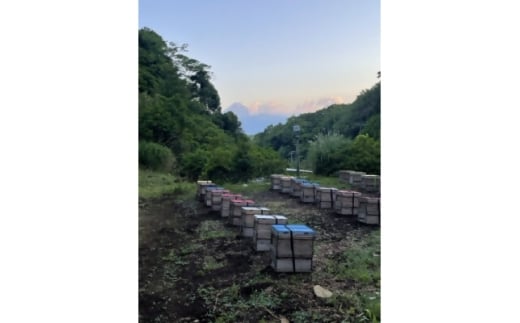 富士山の見える場所に巣箱を置き、およそ120群のミツバチから取れるハチミツを販売されています。
