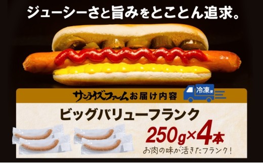 BIGバリューフランク 4本セット 25cm 豚肉 フランクフルト ウィンナー ビッグサイズ 大きい 肉厚 ジューシー 夕食 ご飯 おかず おつまみ バーベキュー BBQ 送料無料 サンライズファーム 千葉県 香取市 KTRAJ011