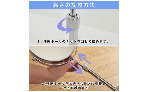 高さが36cmから45cmまで調整できる卓上ミラーです。角度調整も簡単にできます。