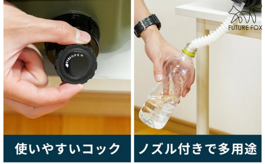 さらに、コックとノズル付きで水の出し入れが簡単かつ衛生的。