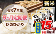 - 【9ヶ月定期便】米 令和7年産ひのひかり 無洗米 定期便 15kg 《お申込み翌月から出荷》熊本県 菊池市 国産 熊本県産 無洗米 精米 送料無料 ヒノヒカリ こめ お米