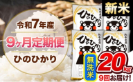【9ヶ月定期便】米 令和7年産ひのひかり 無洗米 定期便 20kg 《お申込み翌月から出荷》熊本県 菊池市 国産 熊本県産 無洗米 精米 送料無料 ヒノヒカリ こめ お米