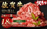 訳あり 佐賀牛 切り落とし 1.8kg(600g×3パック)【2月発送】 国産 和牛 牛肉 お肉 肉 冷凍