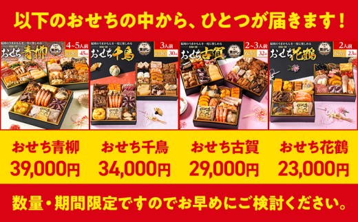 - ▼下記4種類のおせちのうち、いずれか1種類をランダムでお届け