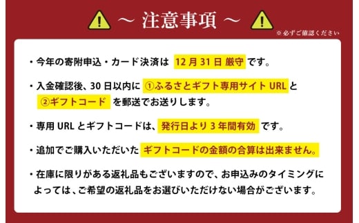 ※ギフトコードの合算は出来ませんので、お申し込み金額と【ふるさとギフト】の額面にご注意ください。