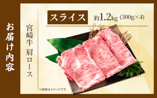 <宮崎牛肩ロース【スライス】1.2kg>【5月発送】霜降り やわらかい サシ 赤身と脂のバランス 炒め物 肉料理 ご馳走 国産 高級 ブランド牛肉 黒毛和牛 数量限定【MI696-my-may】【ミヤチク】
