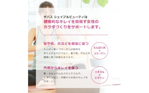 引き締めたいカラダづくりに有効な大豆プロテインと美容をサポートするコラーゲンを合わせてたんぱく質12.5gと、運動する女性に必要な鉄分・ビタミンB6、B12、葉酸、ビタミンDを配合し、すっきりと飲みやすいやさしいキャラメル風味に仕立てたので、運動後に摂取することで喉の渇きを癒しながら、女性のカラダづくりをサポートできるプロテインドリンク「(ザバス)Shape&Beauty キャラメル風味」 ※画像はイメージです。 ※万が一製造停止となった場合は代替の商品で対応をさせていただく場合がございます。 ※寄附金のご入金確認の翌月以降、初回発送から2ヶ月連続でお届けします。
