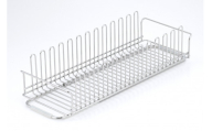 サイズ(約)/幅18×奥行41.3×高さ16.8cm、バスケット内寸:幅14×奥行40×深さ9.8cm、ワイヤーU字部幅1.6cm、ワイヤーすき間0.8cm、ポケット:幅30.2×奥行6.8×高さ6cm、トレー:幅18×奥行39.8×高さ2cm(水が流れる所長さ39.5cm)、本体脚部奥行内寸:40cm、重量(約)/1.46kg、耐荷重(約)/15kg、材質/本体・ポケット:18-8ステンレス、流れるトレー:18-0ステンレス、脚ゴム:シリコーンゴム