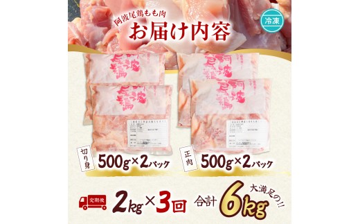 3ヶ月定期便 阿波尾鶏 もも肉 約2kg (約2kg×3回) 冷凍 切り身 正肉 セット 徳島 地鶏 あわおどり