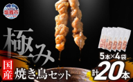 極みの焼き鳥(5本入り)は、国産の柔らかい鶏肉を使用し、一本一本手で刺したこだわりの逸品です。