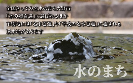 福井県大野市は、霊峰白山の支脈に囲まれ、豊かな自然と美しい水とに恵まれたまちです。山々に降り積もった雪が少しずつ解けて地下に浸透し、まちの至るところから澄んだ水となって湧き出ています。
