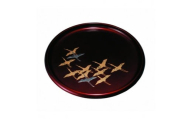 紀州漆器職人が丁寧に仕上げた【丸盆 24cm 玉虫 千羽鶴】です。